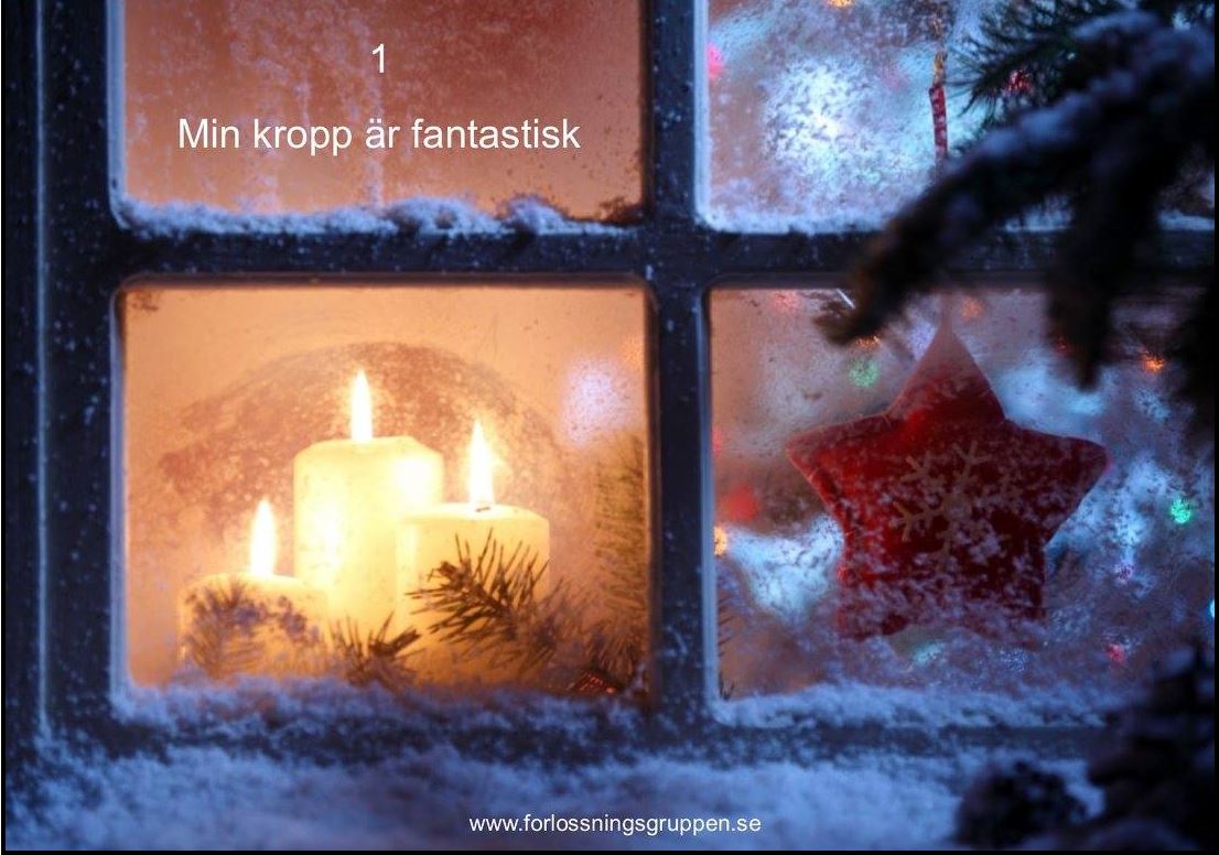 FörlossningsGruppens affirmationskalender, lucka 1 1 december, 201625 mars, 2017 Frida Viibus Lundgrendoulablogg Hela kalendern finns på FörlossningsGruppens Facebooksida Min kropp är fantastisk